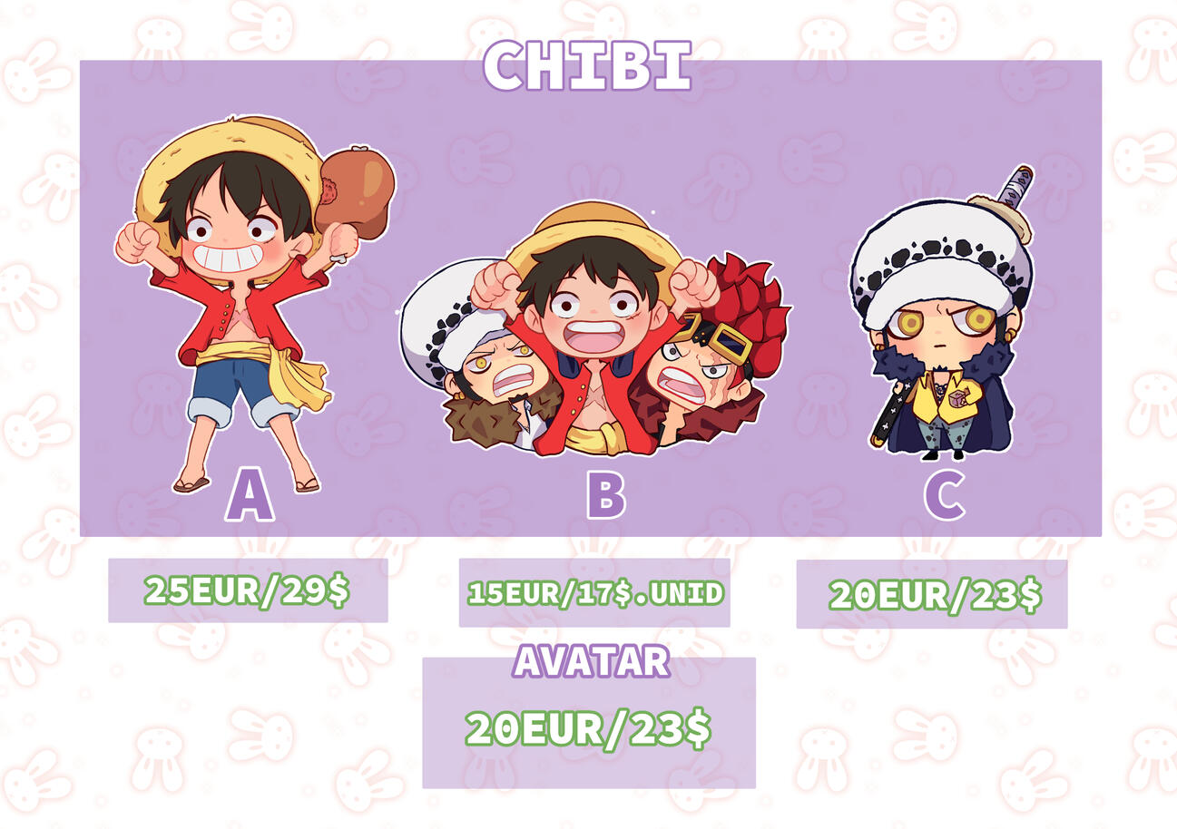 Please, before ordering your commission, you must indicate if it is for personal or commercial use since they are different prices.The price in dollars can change when making the change to euro.The price of the commission can change depending on the difficulty.Any questions ask without fear!Payment is made by Paypal
